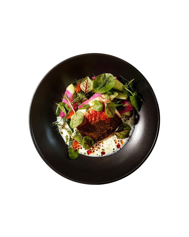buttermilk, chili oil, cucumber, smoked trout roe, dill