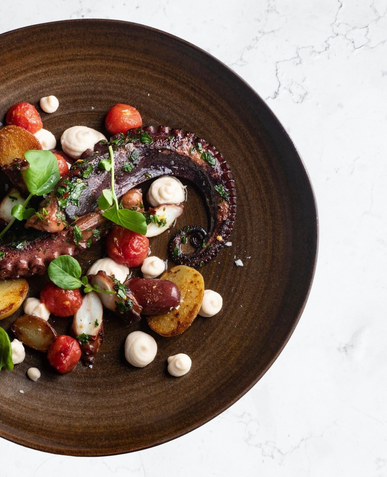 potato pave, fennel tomato broth, dill, cherry tomatoes, capers, garlic butter